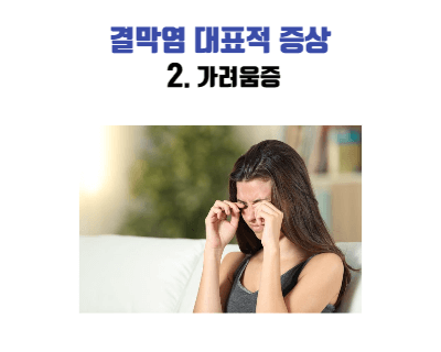 결막염이 발생되면 눈이 가렵고 이물질이 들어간 불편한 느낌을 초래할 수 있습니다. 이때 절대 눈을 비비지 않도록 주의해야 하며, 눈의 자극으로 인하여 과도한 눈물이 흐르기도 합니다.