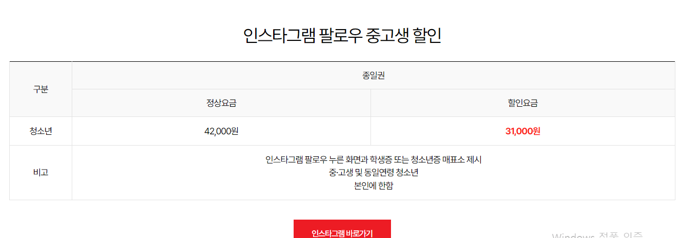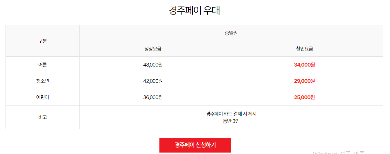 4. 경주월드 자유이용권 할인 그 외 할인 행사 : 경주페이, 인스타그램 팔로우 중고생 할인