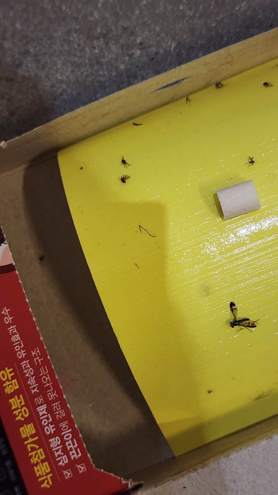 사무실에 수많은 초파리는 푸른빛에 유인되어 탁 탁 소리를 내며 작년에도 올해도 수많은 초파리 유해를 남겼습니다. 하지만 푸른빛에 유인되지 않는 초파리가 있을 수 있습니다. 꿀팁으로는 해충 모기퇴치기를 설치한 뒤편의 사각지대에 다이소 초파리 트랩을 두었더니 퇴치기에 잡히지 않은 벌레와 초파리들이 트랩에 많이 걸려드는 효과를 얻을 수 있었습니다. 초파리 박멸을 위해서는 두 가지 방법을 병행하는 게 가장 효과가 좋았습니다.