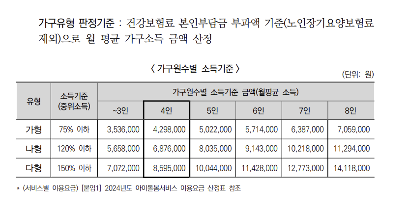 ▶아이돌봄서비스 산정기준은 소득기준만 있고 재산기준은 산정되지 않습니다.
